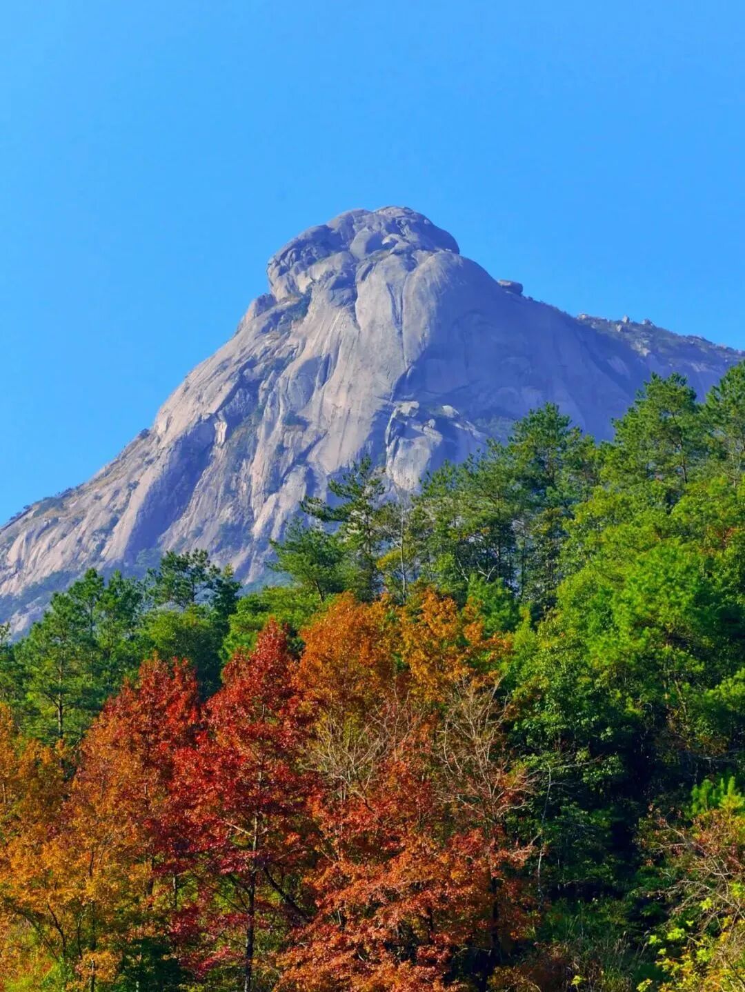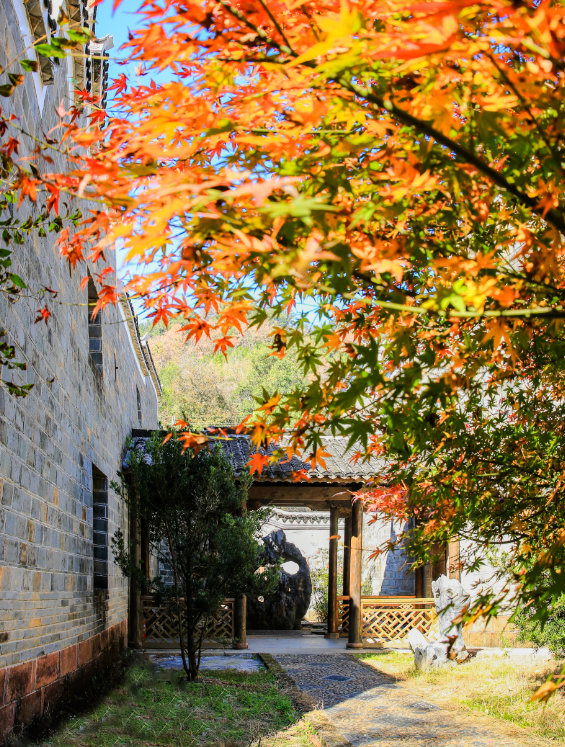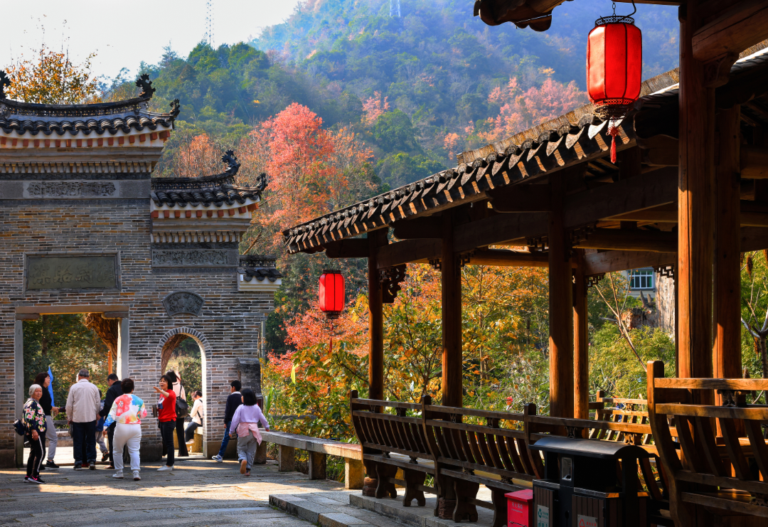 云髻山这里藏着大片的三角枫林,海拔600米以上的山谷被枫叶染成火海。沿登山步道上行,叶片颜色随海拔渐变,山脚是黄绿相间的温柔,山腰是橙红交织的热烈,山顶则是纯粹的深红如霞。